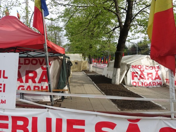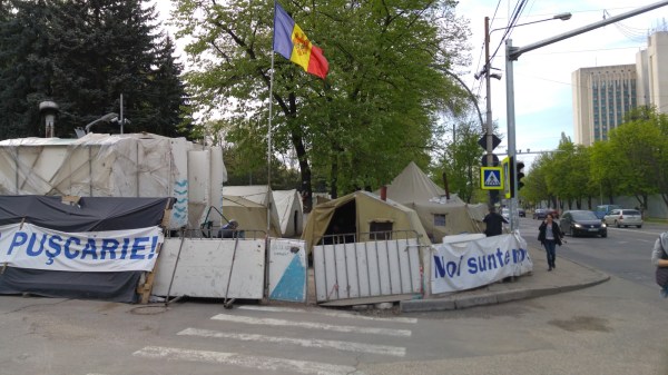 Tent city outside the parliment for those in support of Moldova joining the EU.