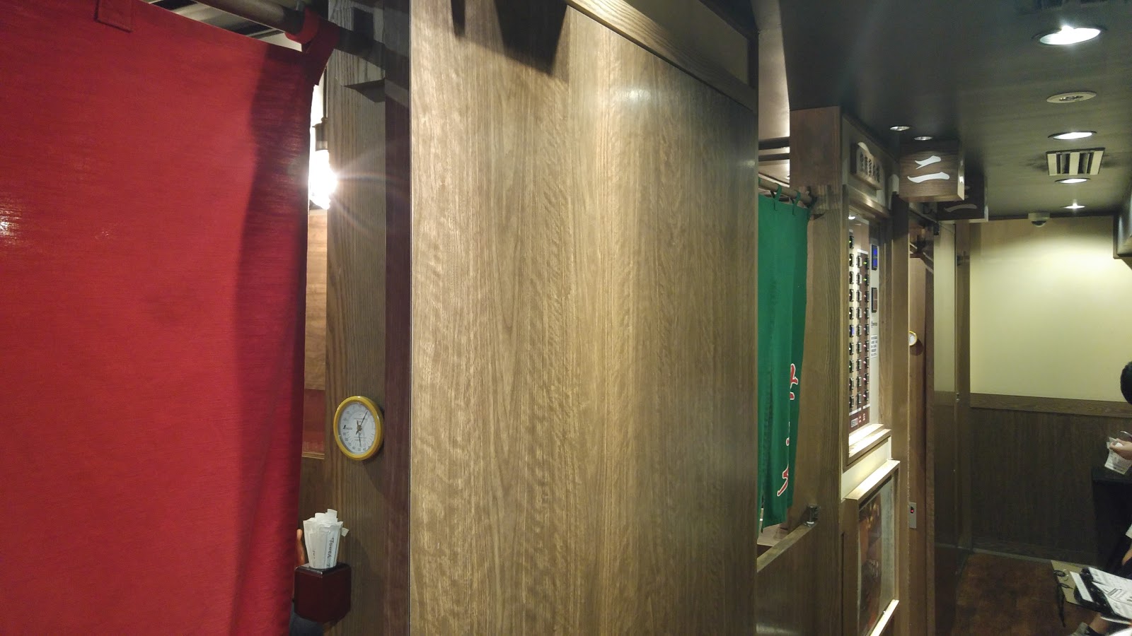 Lined up outside for about 20 minutes, then in side where the line slowly leads down a staircase into a dark, cramped, windowless basement. Eventually I came into the ordering room, should have gotten a picture, insert money into machine, select buttons for exactly what ramen you want, customize everything, then it spits out a ticket, take the ticket and get back in line.