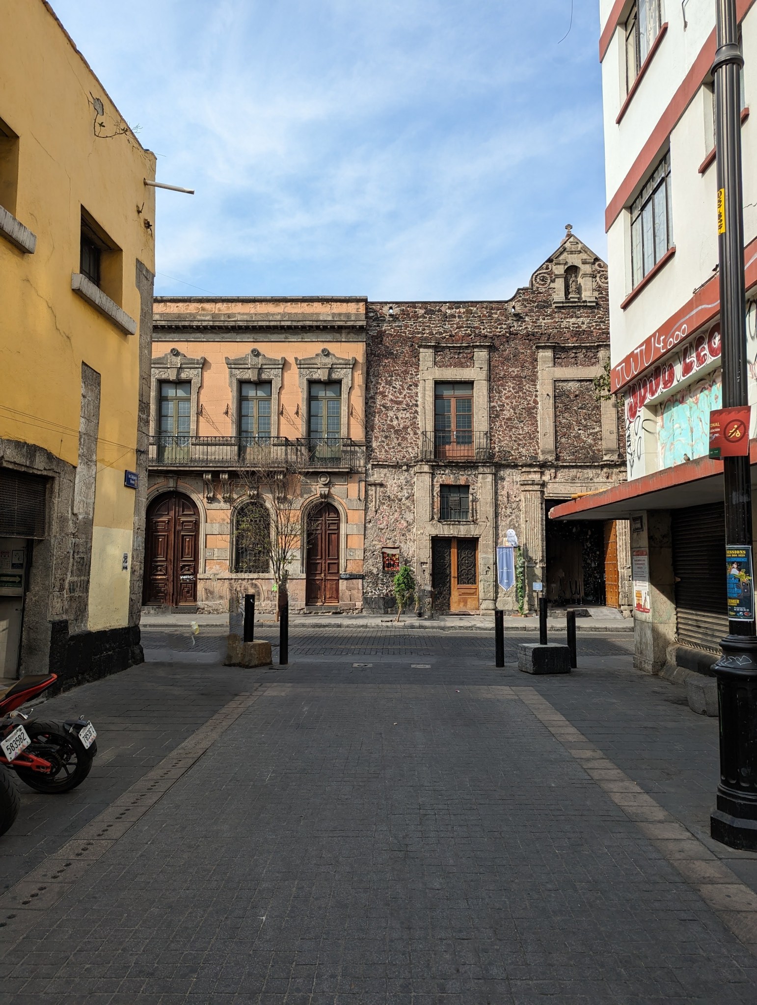 The layout of the streets around the centre of Mexico City today is mostly exactly the same as when it was the capital of the Aztec empire. Thanks to this and good record keeping by the Spanish I was able to stand at the corner of Republica de El Salvador and 20 de Noviembre today which was the exact spot where Cortez and his entourage were standing when Moctezuma II came down from the palace to meet him, on November 8, 1519.