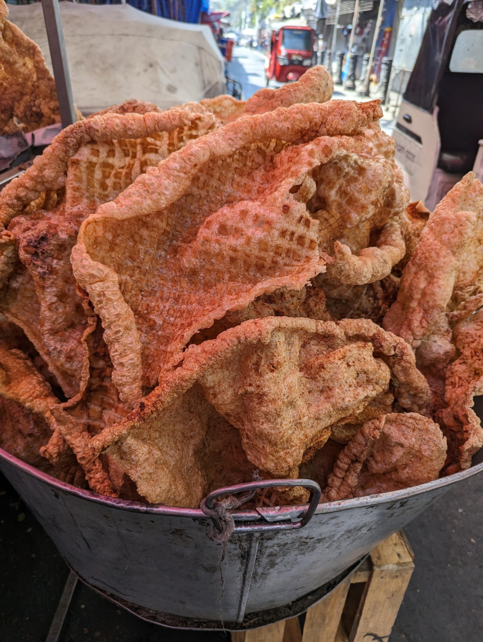 Pigskin, pre-fryFrying in the blackest oilDryingMarinating chickensReady to sell chicharron