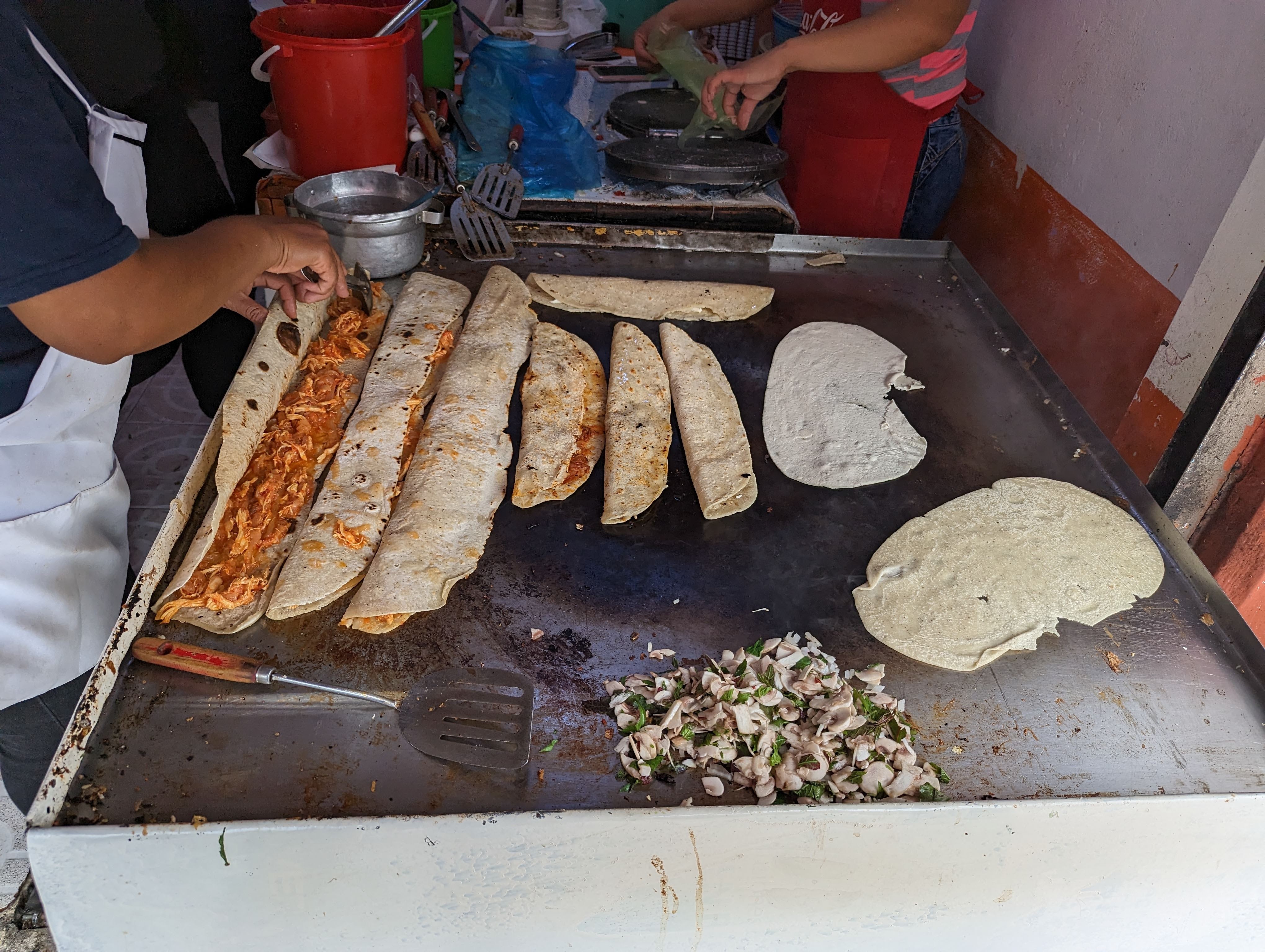 I arrived hungry and found multiple shops making machetes, gigantic quesadillas, which I have not tried yet, ordered one.